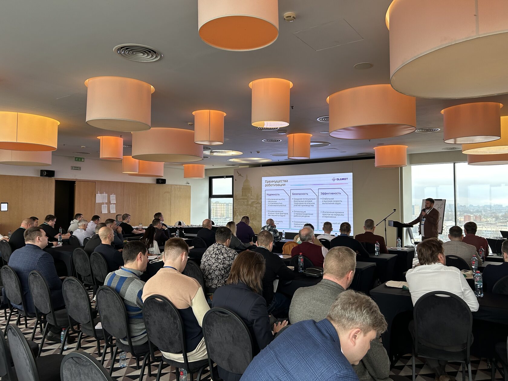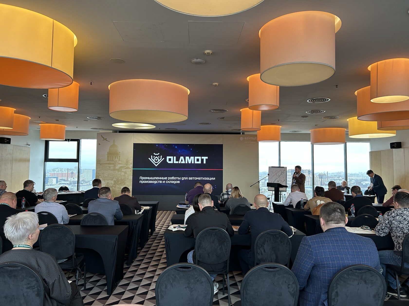 Ключевым событием для нас, конечно, стало выступление Дмитрия Поликарпова, специалиста отдела автоматизации, с докладом на тему: «Промышленные роботы OLAMOT для автоматизации производств и складов».